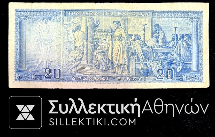20 Drachmas 1955 Banknote Bank of Greece With Democritus Blue VF