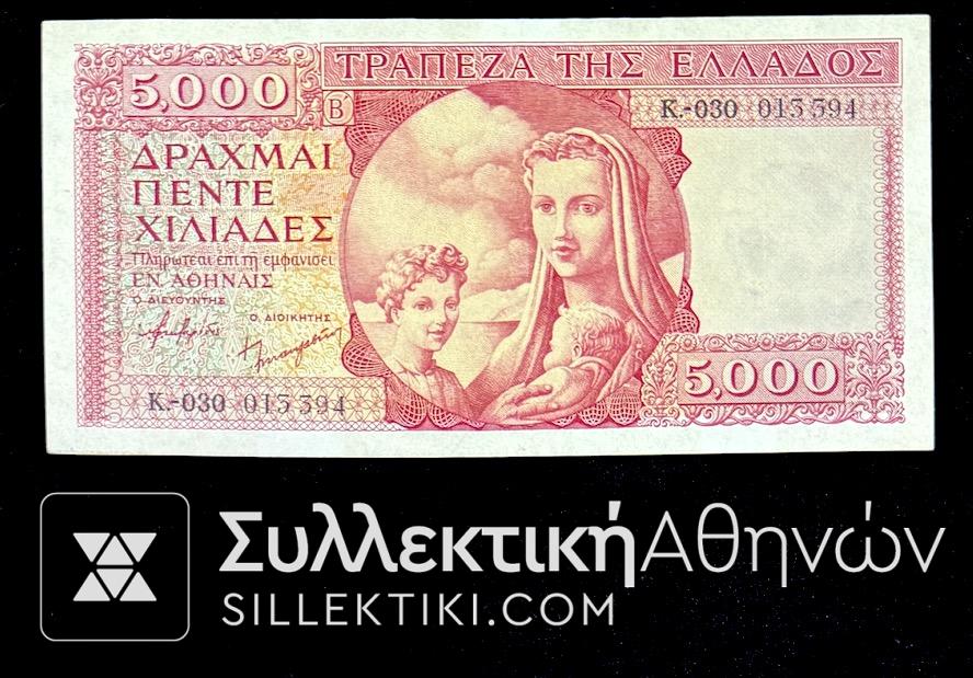 5000 Drachmas “Motherhood” Red 1945-47 Rare Bank of Greece banknote in AU + condition