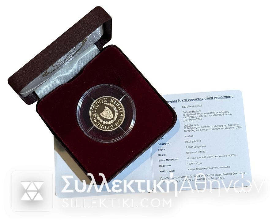 CYPRUS 20 Liras 2004 Gold Coin Proof with its two boxes and certificate