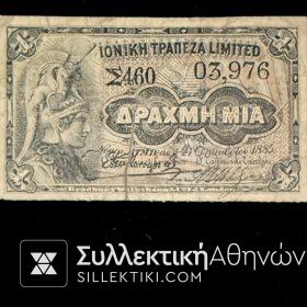 Drachma 1885 IONIAN BANK LIMITED Rare small Banknote with tear