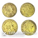 FRANCE 4 Silver Coins of the 17th Century with Anne Marie Louise. Gold plated in very good condition 1/12 ECU 1666 X2 and 1/12 Ecu 1669 X 2