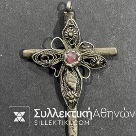 Ασημένιος Παραδοσιακός Σταυρός με Συρματερό Διάκοσμο