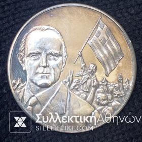 Μετάλλιο Κωνσταντίνος Καραμανλής με τον Χάρτη της Ελλάδας στην πίσω όψη .