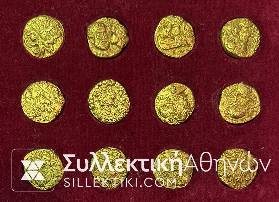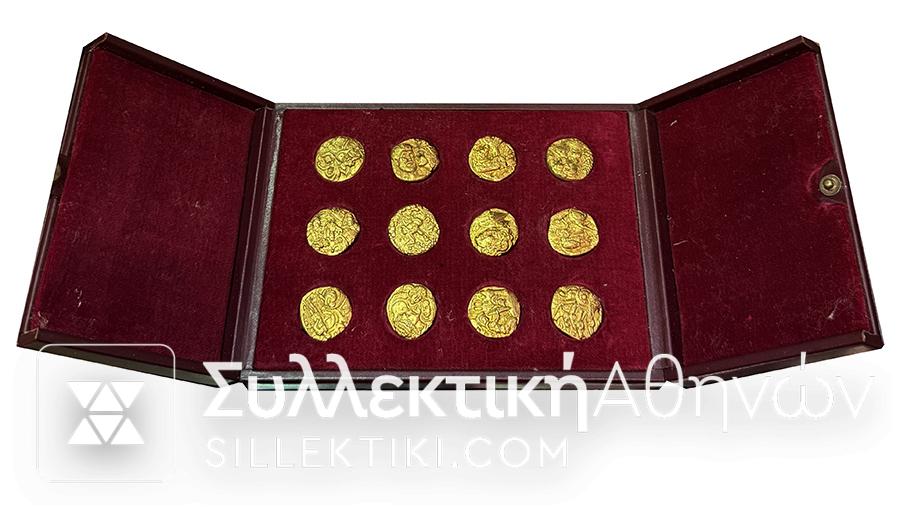 Συλλογή από 12 χρυσά μετάλλια στην πολυτελή κασετίνα τους.