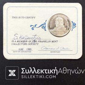 FRANKLIN MINT COLLECTORS SOCIETY MEMBER 1979 MEDALΑναμνηστικό Μετάλλιο Ασημένιο με την κάρτα μέλους έκθεσης . PROOF