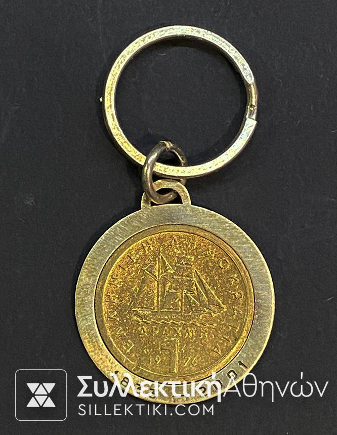 Ασημένιο (925 βαθμών) Μπρελόκ με Νόμισμα 1 Δραχμής 1976