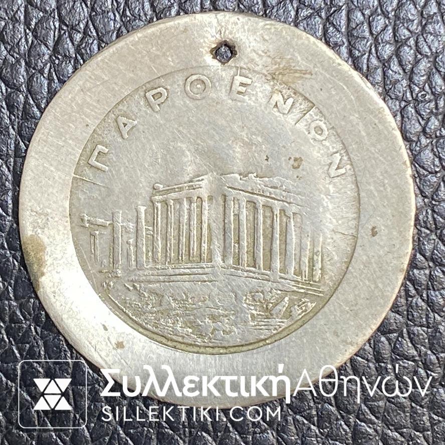 Ιστορική Μάρκα του Καφενείου “ΠΑΡΘΕΝΩΝ” της 1 Δραχμής . Εμπρός ¨ΠΑΡΘΕΝΩΝ” και πίσω “1 ΔΡΑΧΜΗ”
