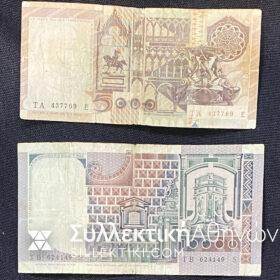 ΙΤΑΛΙΑ 2 παλιά χαρτονομίσματα των 5.000 Λιρέτες 1979 και 10.000 Λιρέτες 1980 σε καλή κατάσταση.
