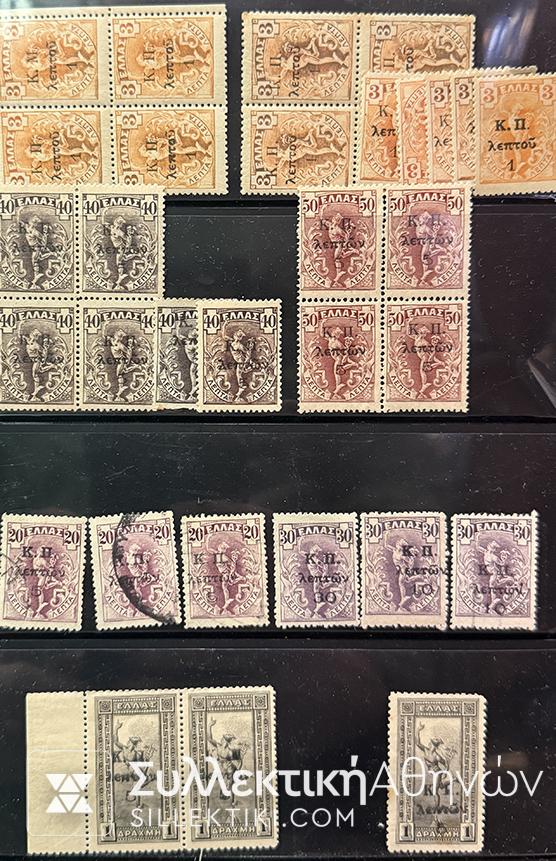 Λοτ Γραμματοσήμων “Κ.Π.” 1917 Σε ιπτάμενο Ερμή διάφορες αξίες επισημάνσεις τετράδες κλπ