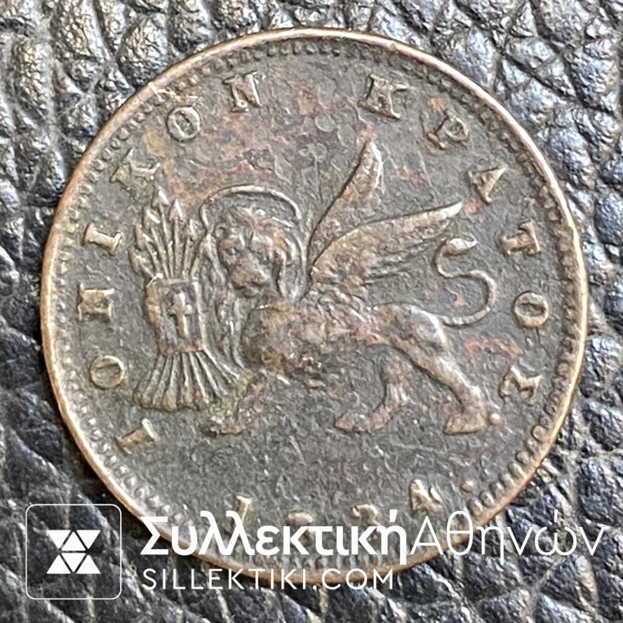 Νέος Οβολός 1834 Ιονικόν Κράτος Χάλκινο Νόμισμα