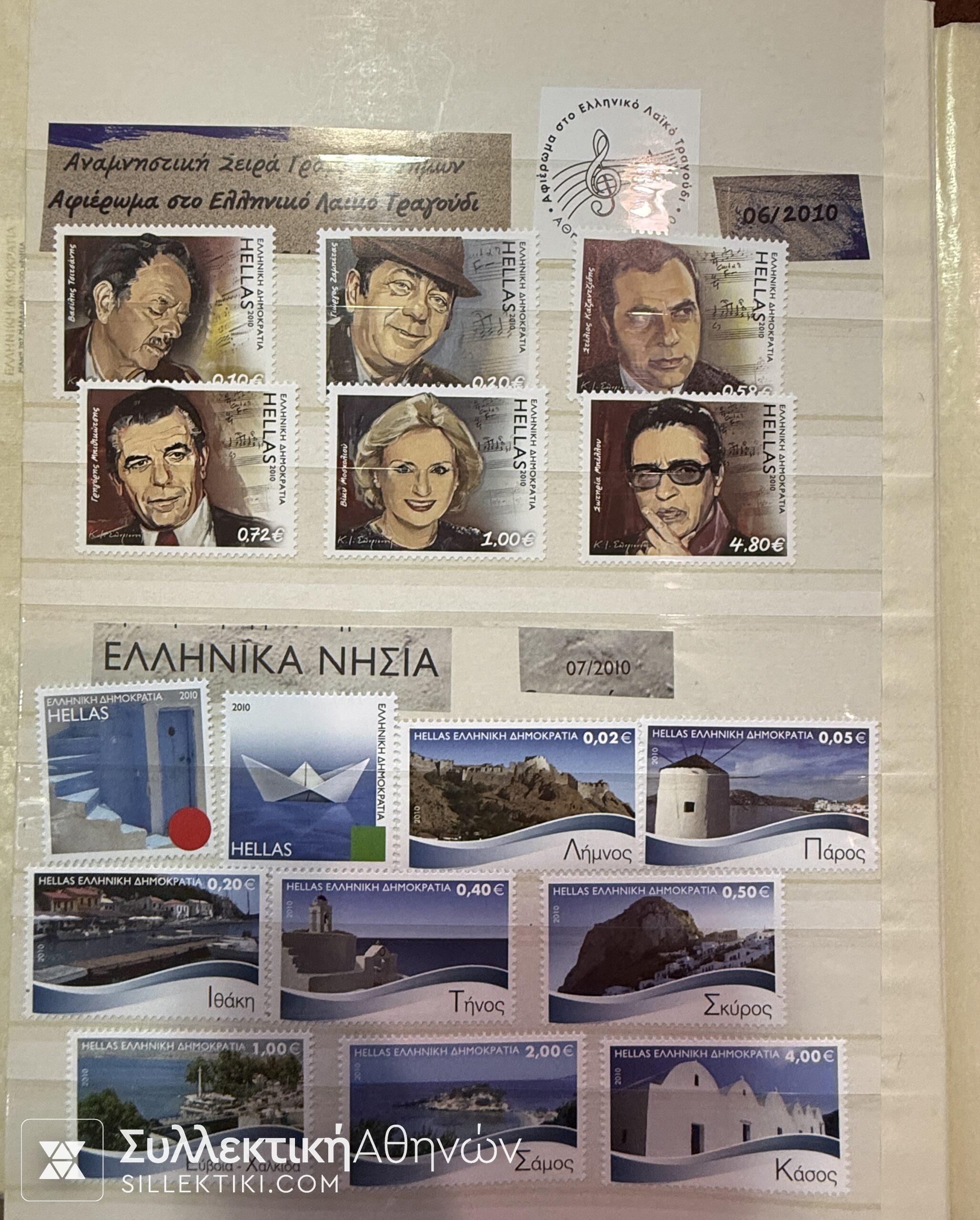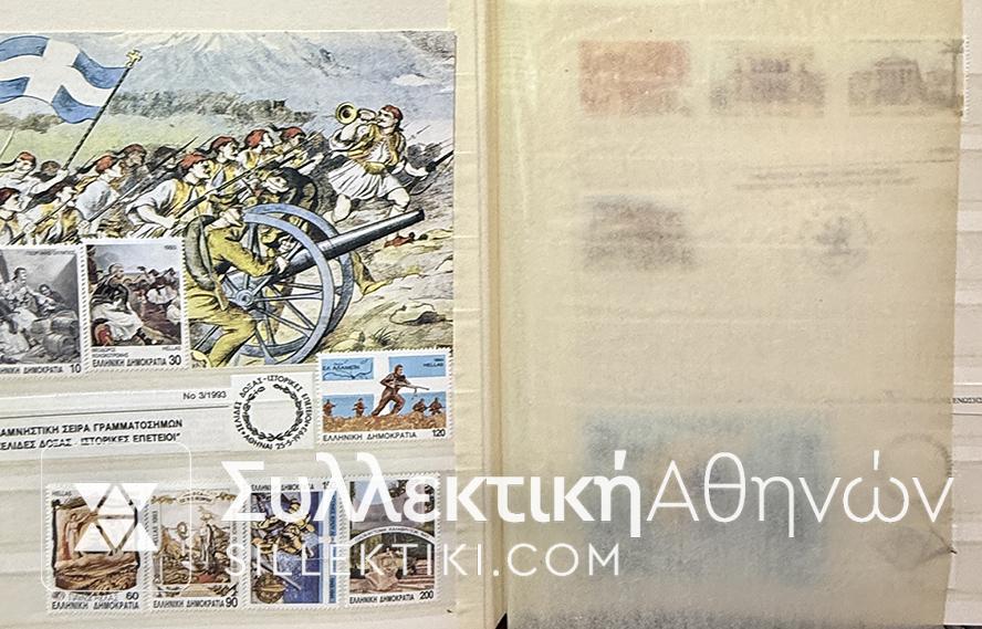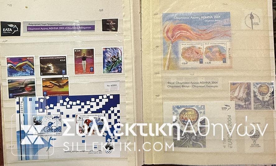 Εξαιρετική συλλογή Ελληνικών γραμματοσήμων κομπλέ 28 ετών (1982-2010) στημένη με πολύ μεράκι. Όλες οι σειρές είναι τοποθετημένες προσεκτικά και συνοδεύονται από κάποια αποκόμματα φυλλαδίων ή ενθύμια .
