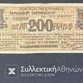 Ταμειακό Γραμμάτιο Χαρτονόμισμα Καλαμάτας 200 Εκατομμύρια 1944 σε καλή κατάσταση με μικρές τρύπες από καρφίτσα.