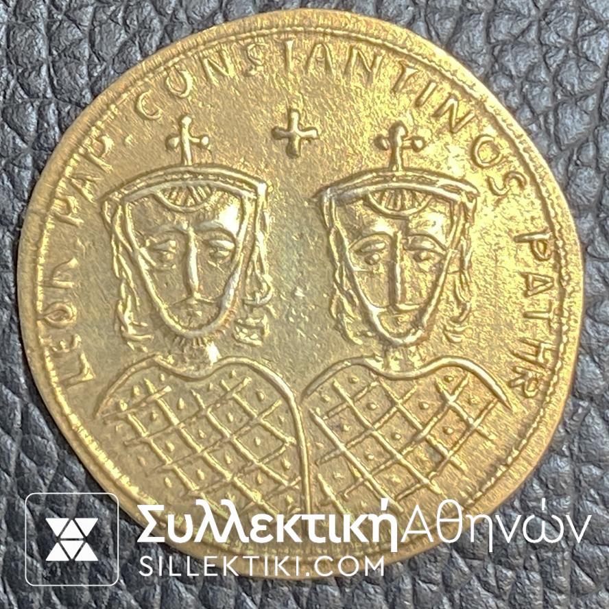 Πιστό αντίγραφο νόμισμα με τον Άγιο Κωνσταντίνο κι την Αγία Ελένη το λεγόμενο ¨Χρυσό φλουρί Κωνσταντινάτο”. Ασημένιο επίχρυσο , πολύ προσεγμένη κατασκευή.