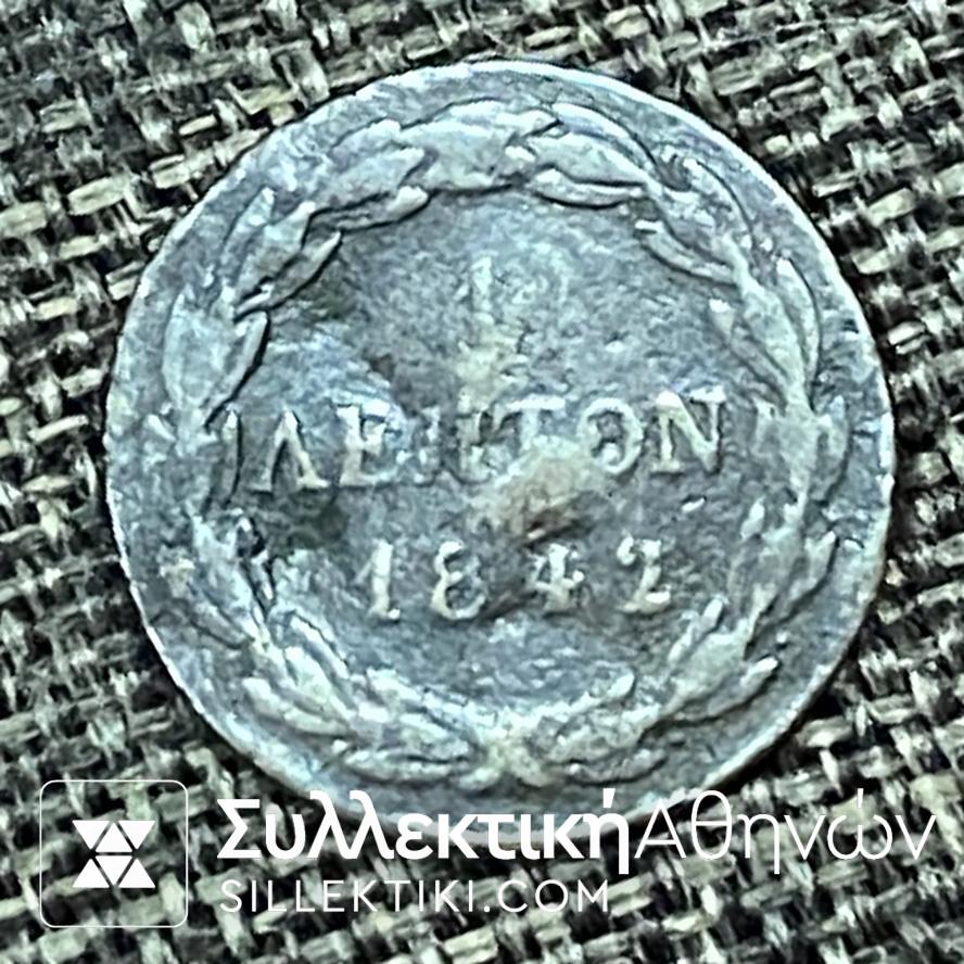 1 Λεπτ;o Χάλκινο Νόμισμα 1842 ΣΕ ΠΡΟΣΦΟΡΑ ΧΑΜΗΛΗ ΤΙΜΗ Εποχής Βασιλείας Όθωνα σε καλή κατάσταση σε τιμή προσφοράς Εμπρός Θυρεός και «ΒΑΣΙΛΕΙΑ ΤΗΣ ΕΛΛΑΔΟΣ» και στον οπισθότυπο δάφνινο στεφάνι και ημερομηνία Ανατροπή εκ των πλαγίων.