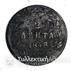 2 Λεπτά 1848 Χάλκινο Κέρμα Βασιλιάς ΌΘΩΝ σε F/VF