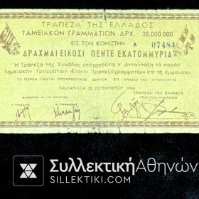 25 Εκατομμύρια Καλαμάτας “ΤΑΜΕΙΑΚΟΝ ΓΡΑΜΜΑΤΙΟΝ” 1944 σε κατάσταση F