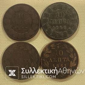Λοτ με4 Νομίσματα 10 Λεπτών του Όθωνα διαφορετικά έτη F