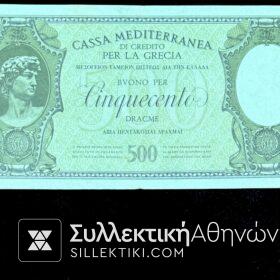 Χαρτονόμισμα Ιταλικής προπαγάνδας στα Ιόνια “CASSA MEDITERANEA” 500 Δραχμές “DI GREDITO PER LA GRECIA” “ΜΕΣΟΓΕΙΟΝ ΤΑΜΕΙΟΝ ΠΙΣΤΕΩΣ ΔΙΑ ΤΗΝ ΕΛΛΑΔΑ” ΠΕΝΤΑΚΟΣΙΑΙ ΔΡΑΧΜΕΣ